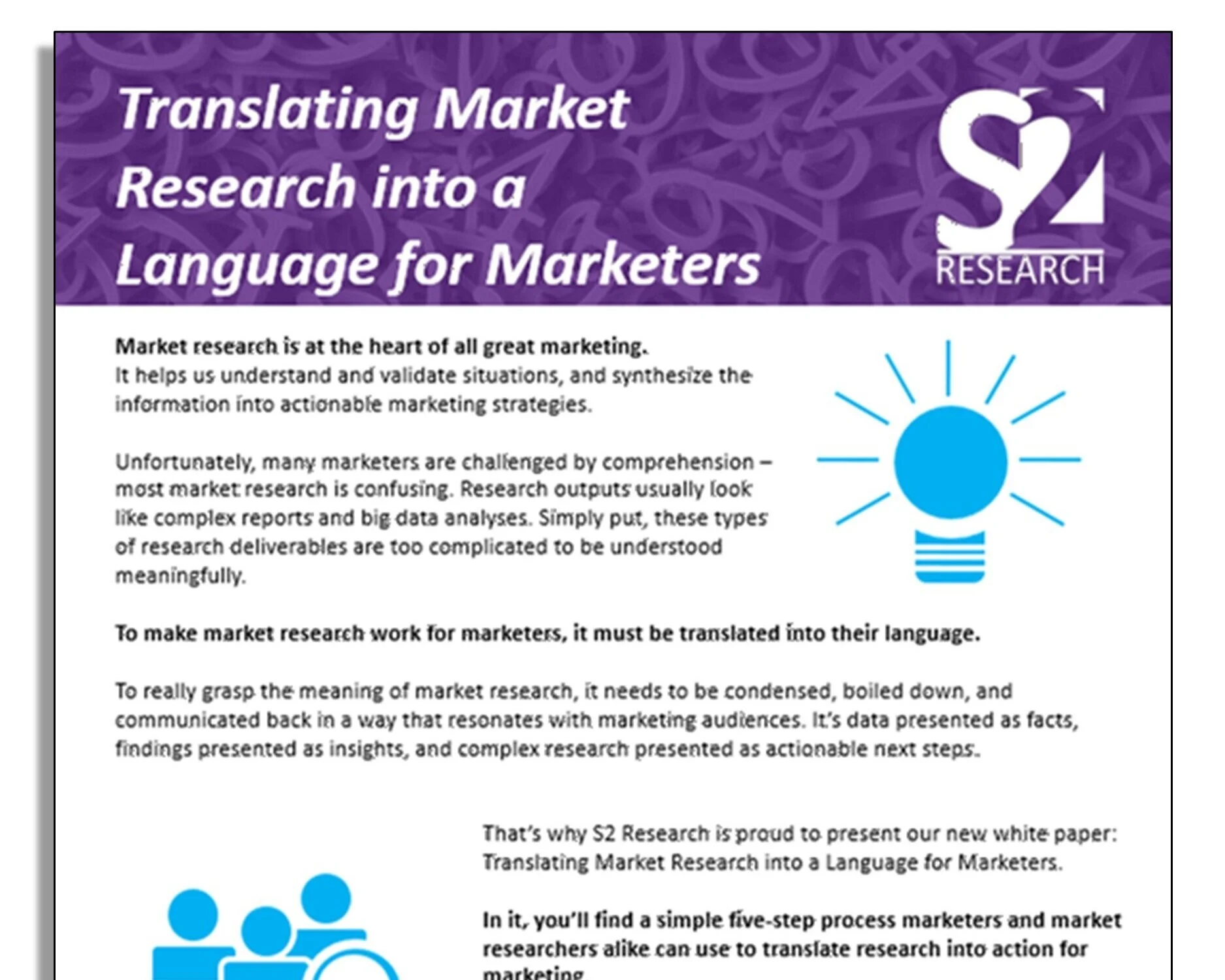 Matt Seltzer with S2 Research, a market research consultancy that partners with marketing agencies and brands, has published a new white paper, Translating Market Research into a Language for Marketers. The free 10-page report is designed to help marketers and market researchers alike better communicate and utilize market research insights in their strategic marketing development. Click here to read the whole article.